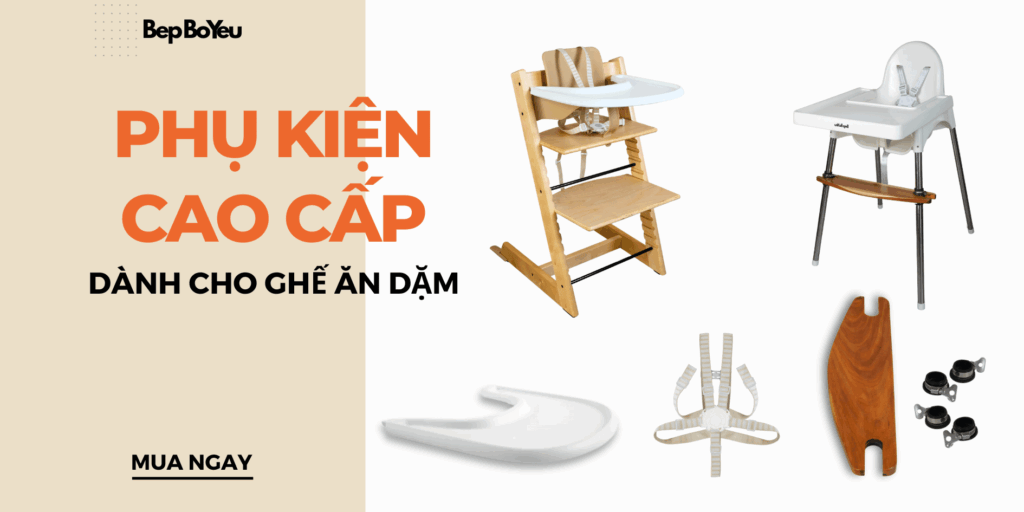 Một chiếc ghế ăn dặm tốt là nền tảng, nhưng để bé ngồi ăn đúng tư thế – thoải mái – sạch sẽ, thì không thể thiếu các phụ kiện đi kèm.